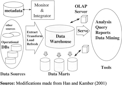 Data Warehousing is the main repository of the organisation's historical and vast quantity of data,  Its corporate memory.  It contains the raw material for management's decision support systems. The critical factor leading to the use of a data warehouse is that a data miner can perform complex data mining.